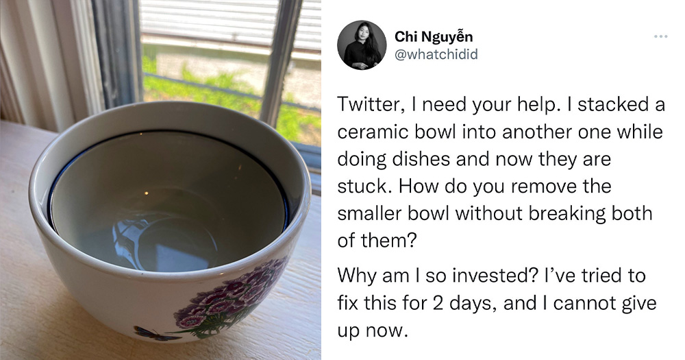 [Photo] Woman's 2 bowls tightly stuck together, crowdsources a